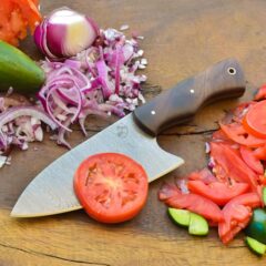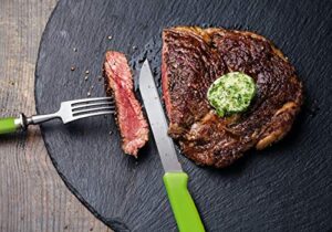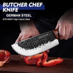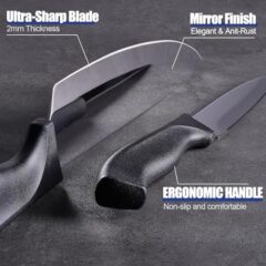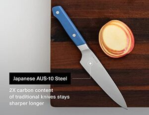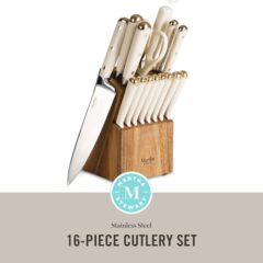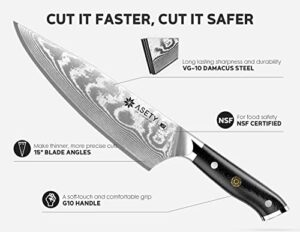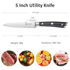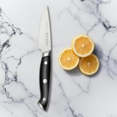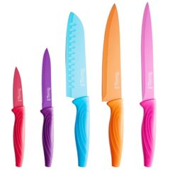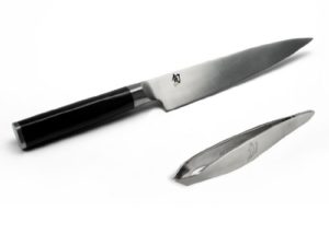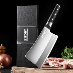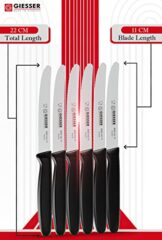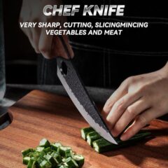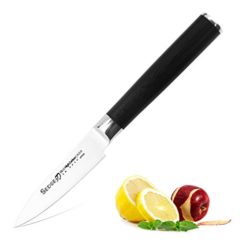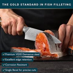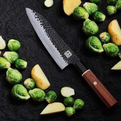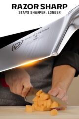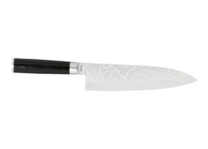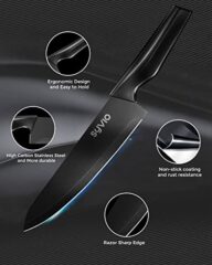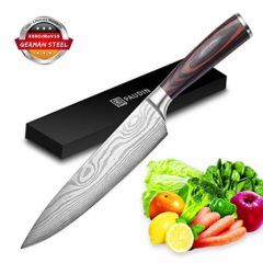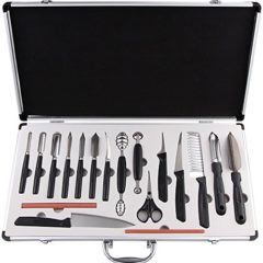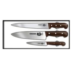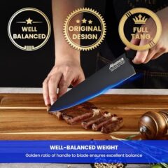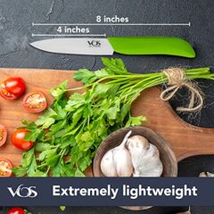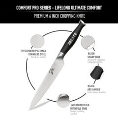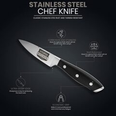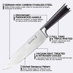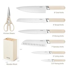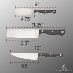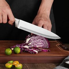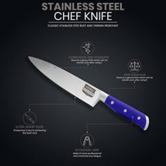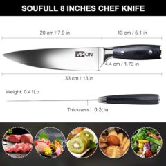 Click for More Images Contoured stainless steel handle has a comfortable ergonomic gripPrecision blades taper to an exceptionally sharp cutting edgeHigh-quality stainless steel blades provide superior precision and accuracySet Includes: 8” Chef...