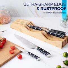 Click for More Images INCLUDED COMPONENTS: Henckels Hardwood BlockKNIFE STORAGE: The block can store different knives including Chef’s Knives, Serrated Utility Knives, Bread Knives, and Paring KnivesPERFECT GIFT: Lifetime limited manufacturer...