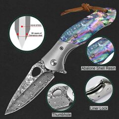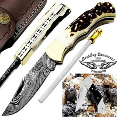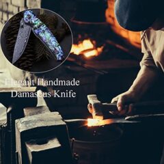 Click for More Images Handmade Damascus Steel Blade – Superior Strength & Sharpness – Forged with layered Damascus steel for unmatched durability, this folding knife delivers precision cutting for hunting, camping, and outdoor...