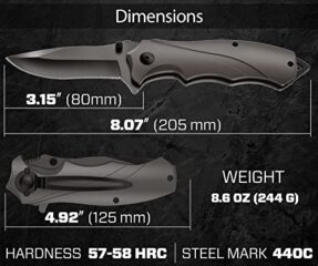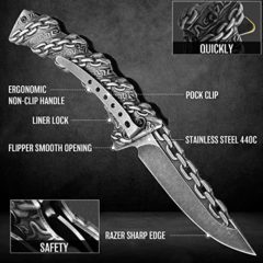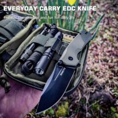Click for More Images RAZOR SHARP OUT OF THE BOX: This folding pocket knife offers excellent cutting performance in terms of strength, hardness, abrasion resistance and corrosion resistance with a long lasting edge3D EMBOSSED PATTERN HANDLE: An...