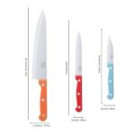 J.A. Henckels International Paring Knives are perfectly designed for smaller kitchen tasks such as peeling or coring vegetables and fruits. 3-pc set includes: 3.5-inch paring knife, 3-inch vegetable knife and a 2-inch peeling knife. Lifetime...