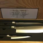 Kyocera Advanced Ceramics Revolution Series 3-Piece Knife Set Includes: a 5.5-inch Santoku Knife; a 4.5-inch Utility Knife; and a 3-inch Paring Knife; essential tools for any home cook preparing fresh meals. The 5.5-inch Santoku Knife is an...