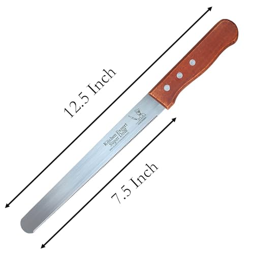 Click for More Images 1.Bread Knife: 8-inchbread cutter is a practical kitchen tool. suitable for breakfast, bread slicer for homemade bread,but also can easily cut homemade cake, bread, pastries, bagels, fruit etc2.Steel stainless steel : bread...