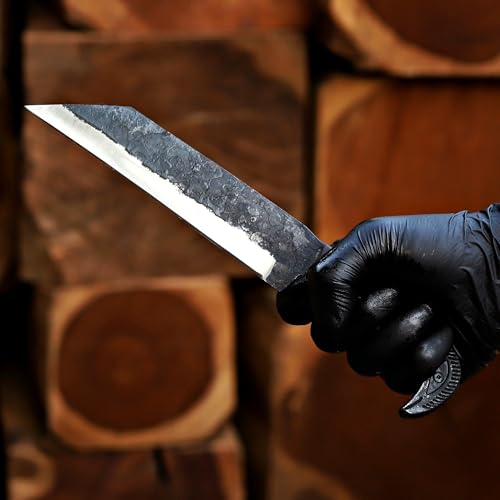 Click for More Images Dimensions: 9.25 inches over all with a 5-inch handle. 4.25 inches in blade length, 1.25-inch width and 4mm thickness.Durability: This tough and long-lasting hunting knife has a full-tang carbon steel blade, hand forged to...