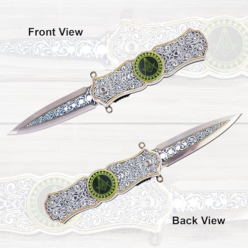 Click for More Images Expert Craftsmanship and Engraved Masonic Emblems: The Masonic Folding Knife is a testament to superior craftsmanship, featuring meticulously engraved Masonic emblems on both the blade and handle. These intricate designs are...