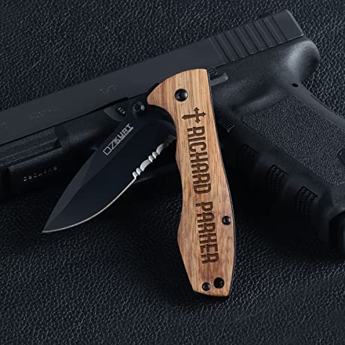 Click for More Images Custom Engraved Pocket Knife: Our custom-engraved pocket knife makes a meaningful and functional gift for fathers, husbands, uncles, brothers, and boyfriends. Personalized with your father's name and a carefully chosen icon...