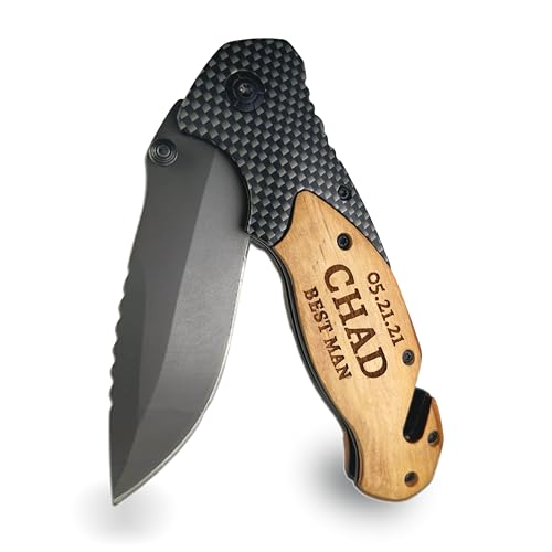 Click for More Images ?Personalized Groomsmen Gift?- If you are having trouble searching for a perfect groomsmen gifts for Wedding, Bachelor Party, and Engagement, our trustworthy personalized pocket knives are designed & made by knife experts...