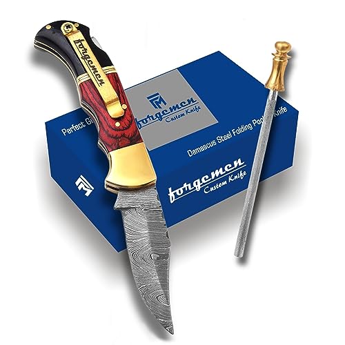 Click for More Images Hand-Forged Damascus Steel Blade - Crafted from high-carbon 1095 & 15N20 steel layers, this damascus pocket knife offers unmatched edge retention and a visually stunning wave pattern. Perfect as a buck knife, camping knife,...