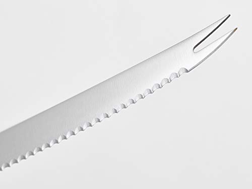 Click for More Images tomato knife – The gourmet 5 inch tomato knife has a serrated edge that enables the blade to slice through tomatoes without damaging the delicate fruit inside, the fork tip is ideal for picking up the thinly sliced produce...
