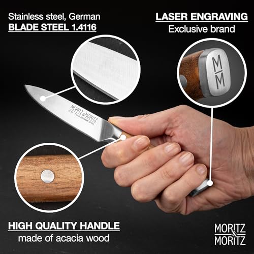 Click for More Images ?????-????? ?????: Crafted from high-quality German stainless steel, this 4 inch paring knife delivers razor-sharp precision for effortless slicing, peeling, and chopping. Perfect for fruits, vegetables, and detailed kitchen...