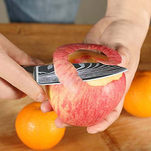Click for More Images HIGH QUALITY STAINLESS STEEL:Folding paring knife is made of high-quality 440C stainless steel with ultra-sharp blade and beak-shaped tip, and wear resistance performance. It has a short blade that eventually tapers to a...