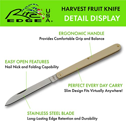 Click for More Images Dimensions: 8.5 inches in overall length (open) with a 4.5-inch handle (closed). 4 inches in blade length, 0.25-inch width and 2.5mm thickness.Durable: This pocket fruit knife is equipped with a solid 7cr17 (similar to...