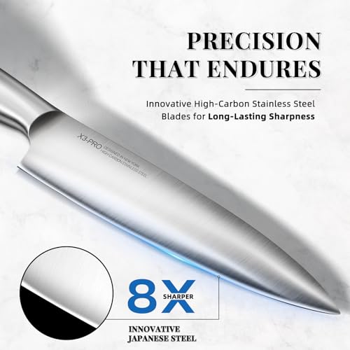 Click for More Images High Carbon Blades: Made with premium 7Cr17 High Carbon Steel that provides a razor-sharp professional quality blade. The steel contains 0.6-0.75 carbon, making it two times tougher than other knives in its class with a...
