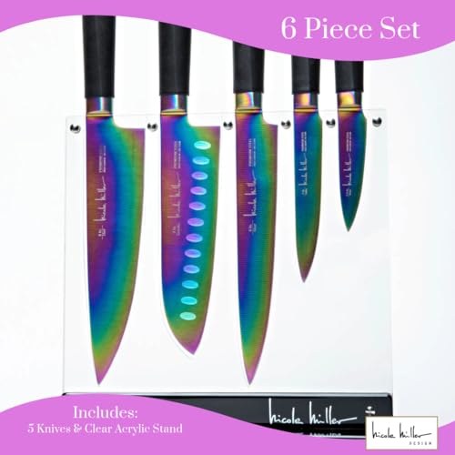 Click for More Images COMPLETE SET: This premium knife set includes five essential kitchen knives: 8” Chef Knife perfect for chopping, slicing, and dicing for various culinary tasks. 3.5” Paring Knife ideal for peeling and trimming fruits and...