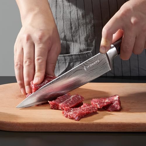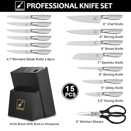 Click for More Images 15-Piece All-in-One Set: ifomaps 15-Piece knife set for the kitchen includes a Chef knife, Bread knife, carving knife, santoku knife, utility knife, fruit knife, 6 * steak knife, built-in knife sharpener, scissor, and knife...