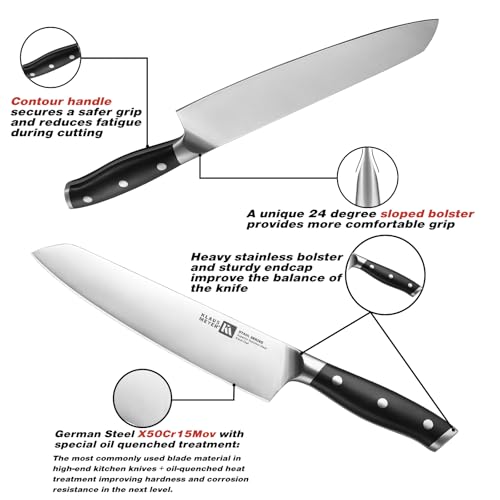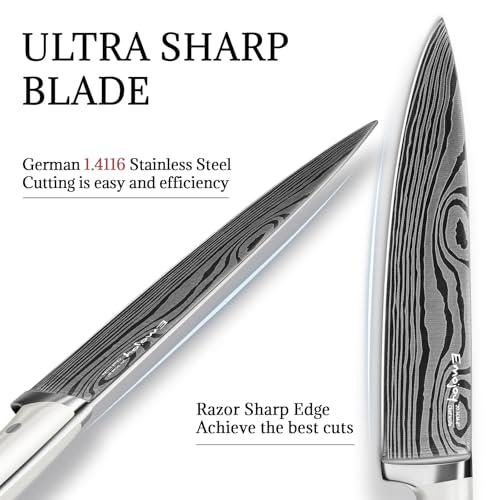 Click for More Images ?PREMIUM GERMAN 1.4116 HIGH-CARBON STAINLESS STEEL??Crafted from german 1.4116 high-quality steel, this knife set boasts an incredibly sharp blade, which makes it slices through food like butter.?FULL TANG HANDLE PROVIDES A...