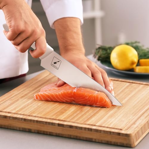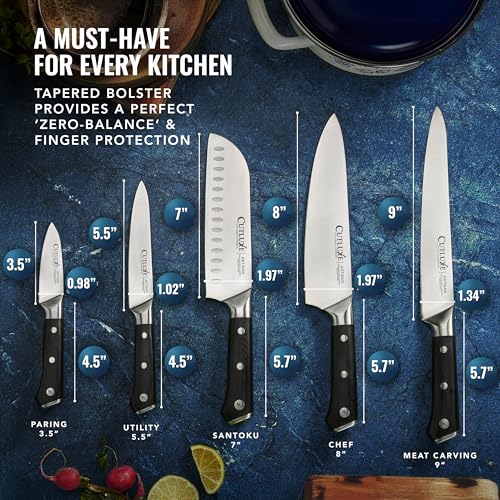 Click for More Images PROFESSIONAL KNIFE SETS FOR CHEFS: Elevate your culinary skills with this 5 piece knife set of 8" Chef Knife, 7" Santoku Knife, 5.5" Kitchen Utility Knife, 9” Carving Knife and 3.5” Paring Knife. Ideal for chefs and home...