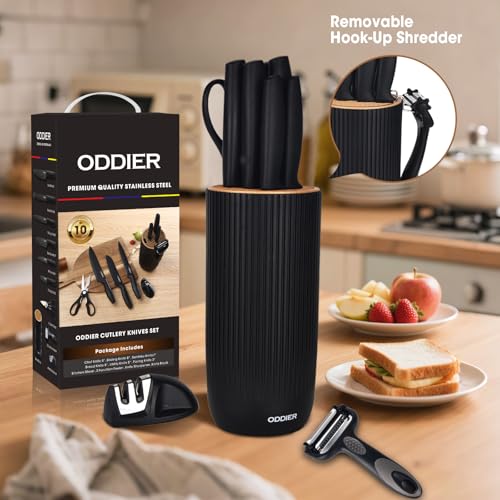 Click for More Images 10 IN 1 KITCHEN KNIFE SET - ODDIER Kitchen Knife Set includes1 x 8" Chef's Knife, 1 x 8" Slicing Knife, 1 x 8" Bread Knife, 1 x 7" Santoku Knife 1 x 5" Utility Knife, 1 x 3" Paring Knife, 1 x Kitchen Shear, 1 x 3 Function...
