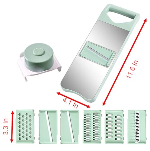 Click for More Images Size: 11.6 inch x 4.1 inchMeterial: PP and stainless steelColor: light greenDesign: 6 different knife for cutting into shreds, slicing and minced garlic, hand protect designApplication: for kitchen food slicer More...