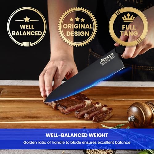 Click for More Images HIGH QUALITY GERMAN STEEL: Knives feature full tang blades made from German steel for superior durability and cutting. Corrosion resistant steel is stronger and more durable than other materials, resisting chipping and...
