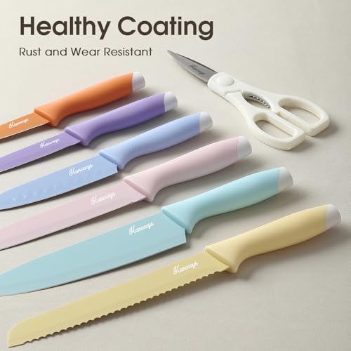 Click for More Images ?PREMIUM HIGH-CARBON STAINLESS STEEL & SHARPENER & CERAMIC COATING FOR LONG-LASTING SHARPNESS??Crafted from high-quality steel, this knife set boasts an incredibly sharp blade, which makes it slices through food like butter....