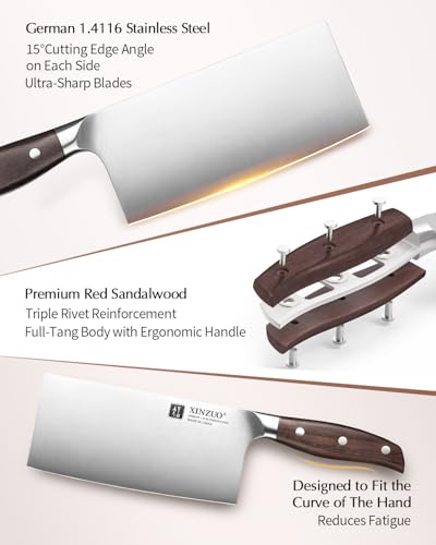 XINZUO Meat Cleaver Knife, 7 Inches German Stainless Steel Chef Cleaver Knife,Vegetable Meat Cleaver,Multifunction Chopper Butcher Knife,Chinese Chef Knife, Ultra Sharp, Red Sandalwood Handle