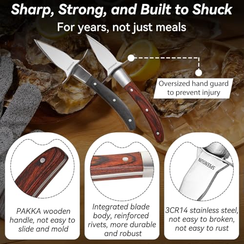 Click for More Images ?Quality Sturdy Blade?The oyster shucking knife is made of 3CR14 + stainless steel. The thick and solid high-carbon stainless steel oyster shucker blade has perfect rigidity and width, not easily bent or broken. The "full...