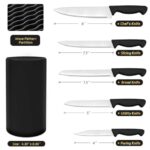 Everything you need - In one premium knife set Our high-quality knife set offers the right knife for any task, and even comes with a stand and knife sharpener. The blades are made from stainless steel and coated with a non-stick coating paint....